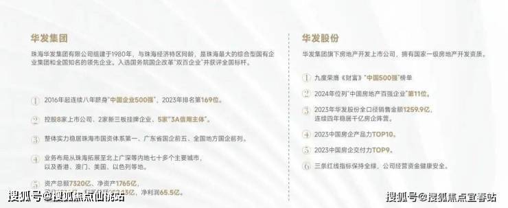 华发集团:组建于1980年,与珠海经济特区同龄,是珠海最大的综合型国有企业集团和全国知名的领先企业。入选国务院国企改革“双百企业”并获评全国标杆,2023年中国企业500强169位。(数据截至2023年底)