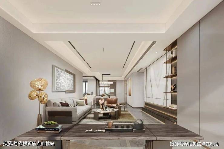 ②颜值品质空间:750*1500mm卡塔灰超大地砖通铺、柜体木纹留影、抗潮湾玺同款金属PET、天幕白玉电视背景墙、特殊玻璃、仿金属踢脚线,多个豪宅同款颜值细节,生活充满爆款。公区的意大利灰大理石,仿木纹铝合金顶板,金属线条装饰,玫瑰金电梯门框,豪华酒店式电梯,精致大堂壁画,全空间高颜值。