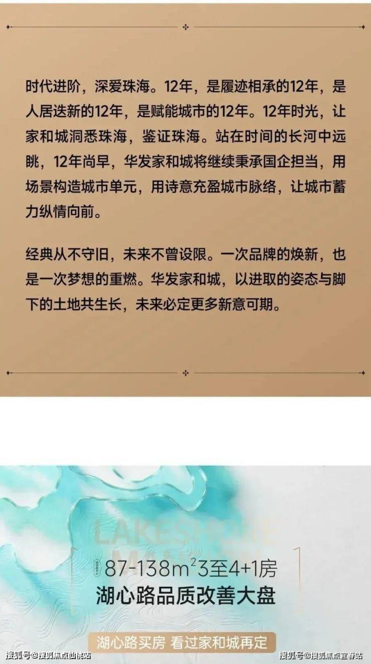 一直经营珠海的华发,品牌加持最懂湖心路的家和城项目,双雄联袂,以双国企的实力,双国企的口碑,双国企的产品理念,共筑湖心路首席品质改善大盘,实力筑城,造珠海西人居典范作品。