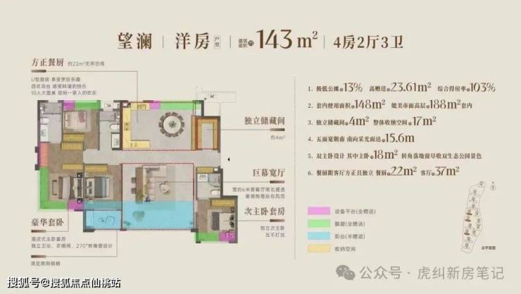 低密洋房:约103-143平极致低公摊纯洋房,13-15%超低公摊率,远低于市面传统项目标准