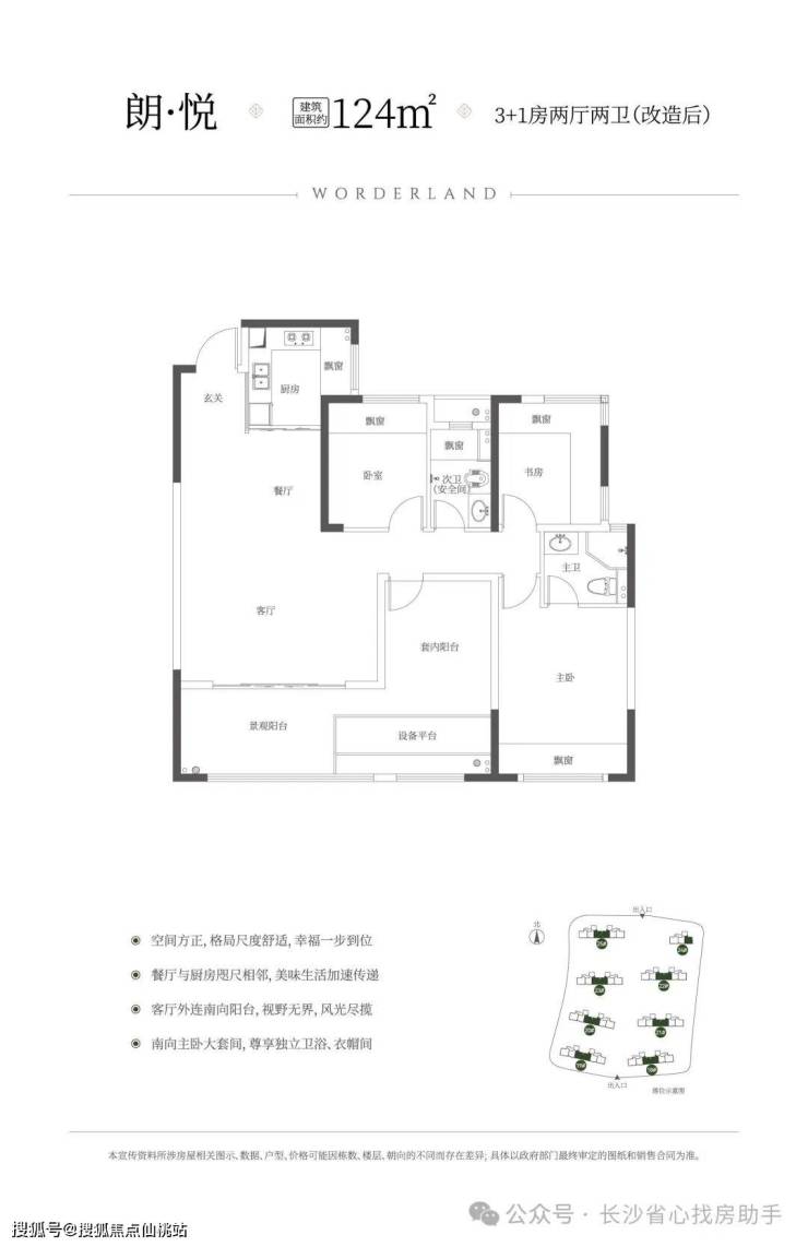建筑面积约124㎡3+1房、约5.4m客厅开间、小面积大格局、得房率约101%