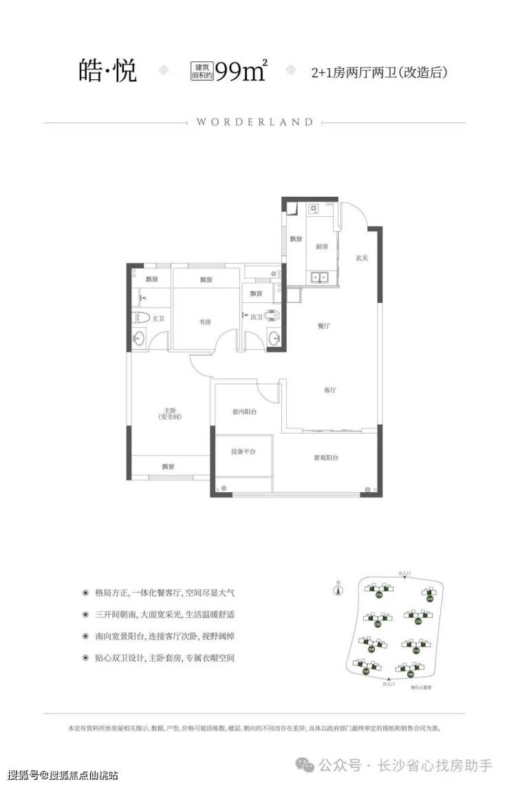 首发新规建筑面积约99㎡2+1房、约3.9m客厅开间、三开间朝南、得房率约102%
