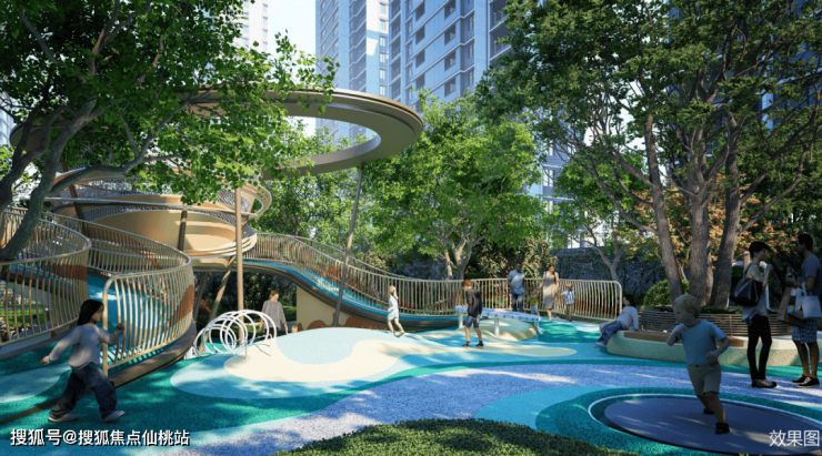 莫奈花园灵感的下沉庭院,与“锦廊涟漪”水景灵动交融,水院南侧为小朋友营造一方锦鲤戏水池,水光潋滟,可玩可赏,营造园内流动的水之艺术。