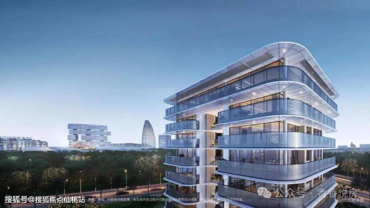 云上花园之居,水上漂浮之所在建筑风格上,以“海洋灵动曲线”为设计语言,从海洋动态中汲取灵感,通过铝板与玻璃所呈现的横向柔美线条,打破固有审美,让建筑呈现出“云上花园之居,水上漂浮之所”的海洋灵动感。
