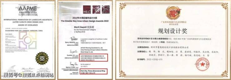 国内外选评载誉无数,区域国际铸就战略高地。问鼎国际ILFA顶级荣誉以及荣获2022年大湾区城市设计大奖、广东省风景园林与生态景观协会科学技术奖规划设计(规划类)奖项。