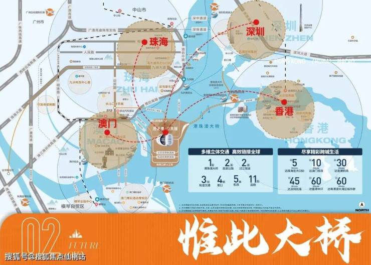 港珠澳大橋是大灣區國家戰略、粵港澳融合的支點,串聯深港珠澳四大特區,便捷通達港澳,1橋2路3軌4岸5機場11高鐵海陸空軌立體交通,鏈接大灣區,中轉全球。