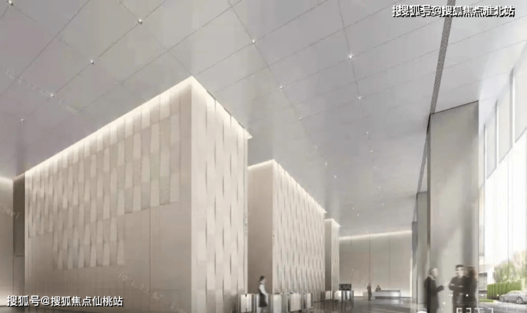 首层12米挑高总部大堂,建筑面积约1500m大堂设计提炼外建筑“折叠”元素,幕墙采用极简主义,营造出舒适的综合商务空间