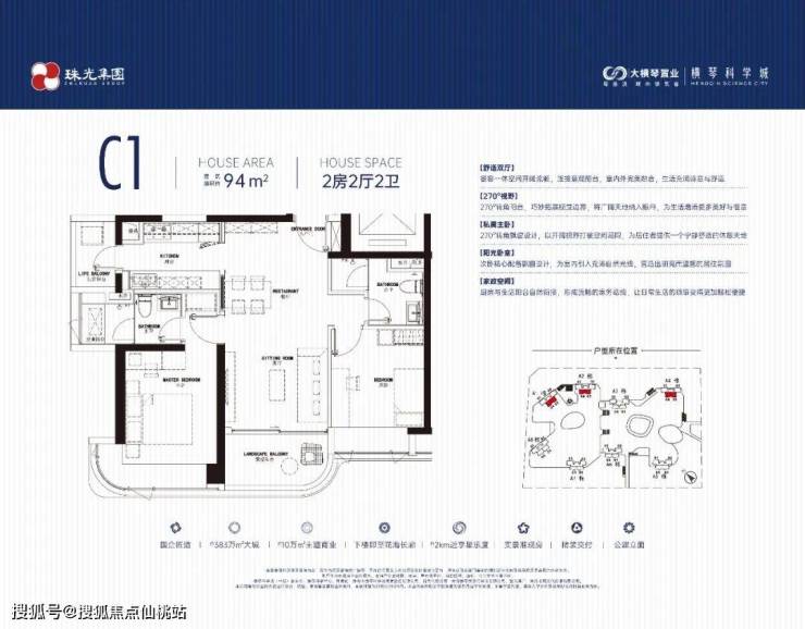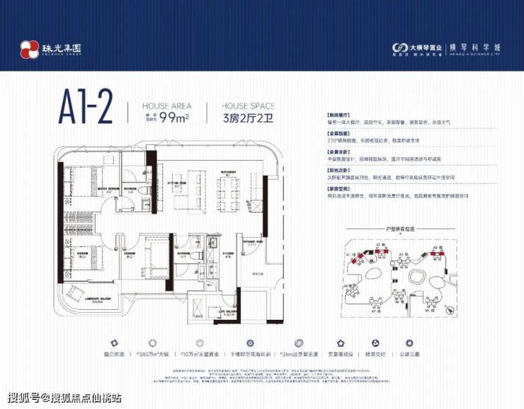 橫琴科學城一期,僅6棟568席准現房住宅,建築面積約94-100㎡精緻戶型,精裝交付,兩室及三室格局,皆以人性化設計滿足多樣生活需求。