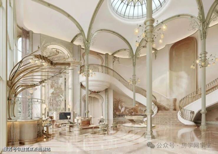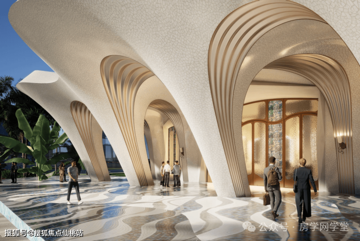 大量运用了流动的曲线元素,打破了现代奢宅的极简冷淡工业风,更赋予建筑一种灵动的美感。