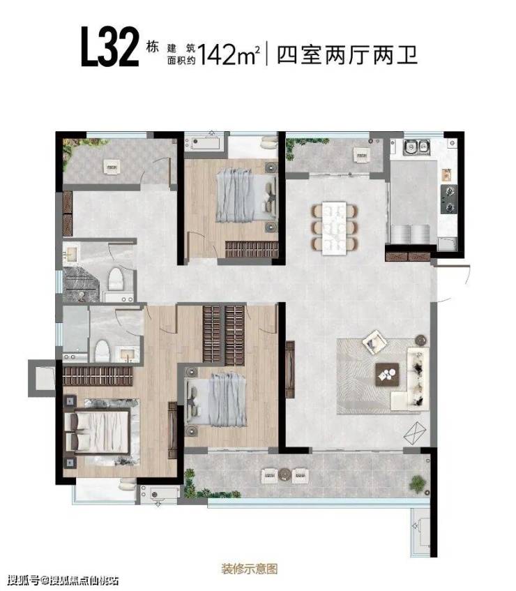 建筑面积约142㎡户型,客厅开间约4.5米,面积达26㎡,尽显主城生活排场。双联景观阳台连通客厅和南次卧,宽度达到约7.5米,保证充足采光与观景视野,将阔达心情倾诉于自然,品茶观景,倍享人生趣味。所有卧室开间均超3米,兼顾家庭成员舒适生活,套房式主卧设置主卧私享卫浴,生活更感从容。