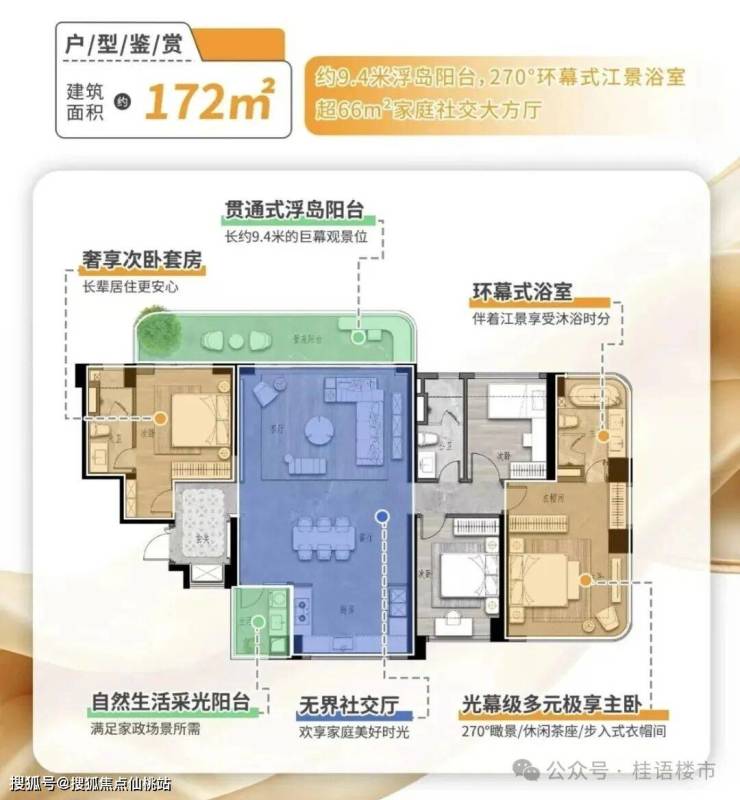 ◦ 亮点:9.4米巨幕阳台、270°江景、更通透