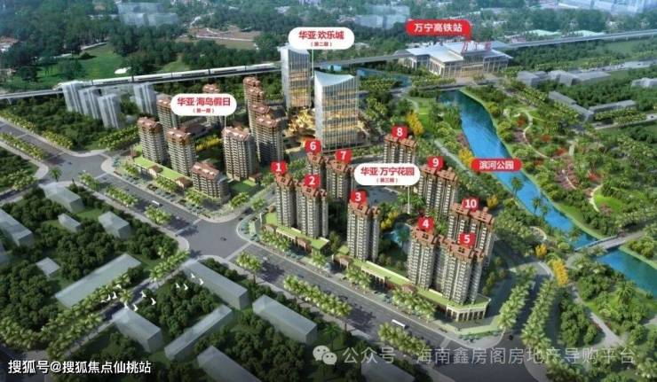 项目位于万宁市主城区,高铁站对面,紧邻约300亩滨河公园,坐拥万宁最大商业综合体——华亚欢乐城,商超、美食、潮店等近100个品牌商家聚集,距离文化商业广场约1公里,距离万宁第二小学约500米,醇熟配套赋能美好生活。