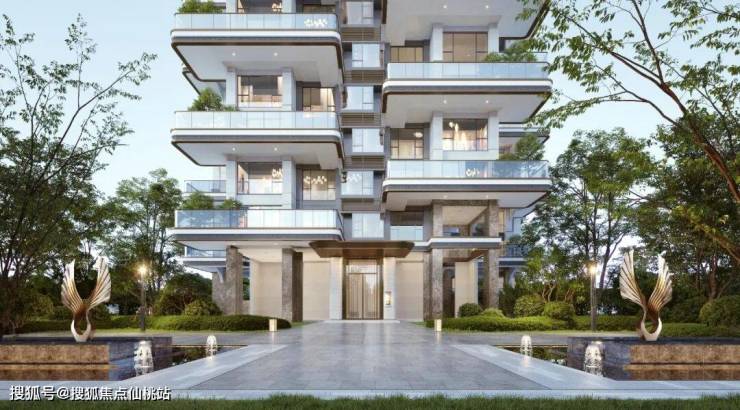 (3)楼体外立面:汲取超跑设计语言,以宾利灵感展翼弧线,打造天空之翼奢品。