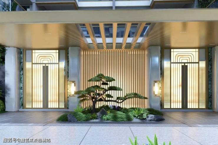 (2)南门金阙门:高奢界面,迎水归家,BVLGARI帝王绿奢华饰面,星级酒店环岛落客设计,实现归家的情绪转换,塑造优雅的仪式感与领域感。