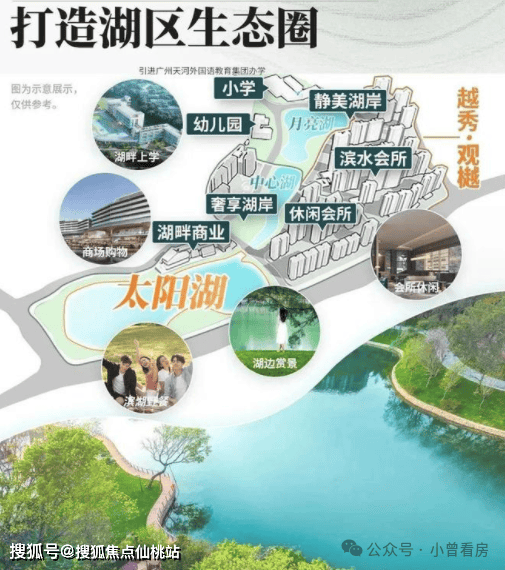 物业管理由越秀商管负责,物业费为 9.9 元 /㎡/ 月,提供 24 小时门岗值守、快递上门等日常服务。社区围绕 5.3 万方的日月双湖打造,湖岸线长达 1.9 公里,还规划了七大主题公园,目前湖水经过生态修复已达到地表二类饮用水标准,成为日常休闲的好去处。一期的 2000㎡会所已经投入使用,里面有恒温泳池、健身房、瑜伽室等设施,业主平时锻炼很方便。