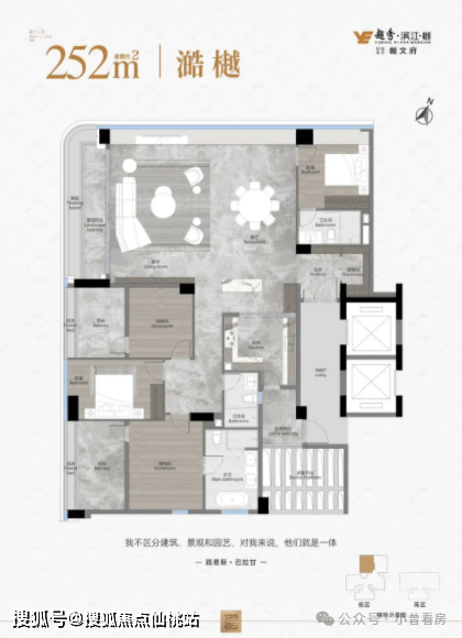 目前越秀观樾主推 126-252㎡的三至五房,还有 210㎡的合墅产品在售,所有户型均为纯板式设计,大部分做到了南北通透,得房率超 85%,部分户型因为赠送飘窗和阳台面积,实用率能达到 110%。