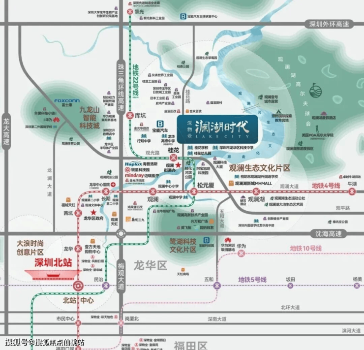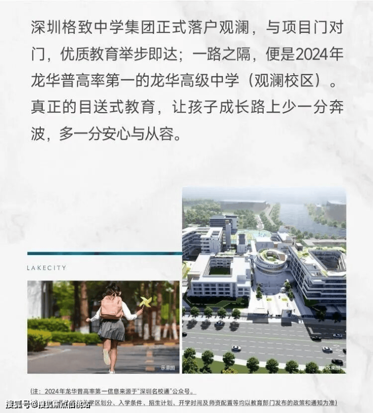 另外深物业澜湖时代仅一路之隔的龙华高级中学观澜校区,是全龙华区招生的。