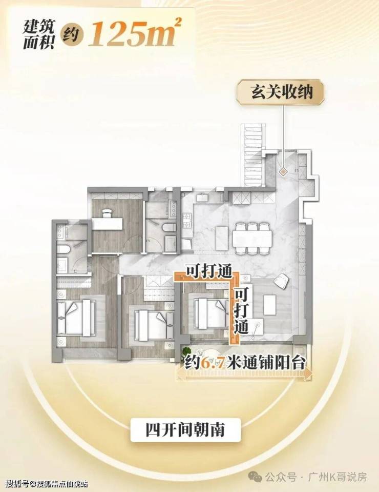 整个LDK一体化超聚厅开间达6米,若将客厅与多功能房打通,横向尺度更可延展至惊人的约9米。
