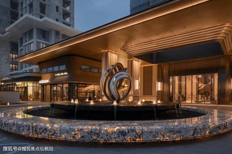 仪式感归家入口为每一位住户提供从容尊崇的抵达序幕。视线中心聚宝水景赫然在目,成为视觉与精神的焦点,透光石材在夜晚灯光亮起时与水波交织,漾出奢华而静谧的气质。