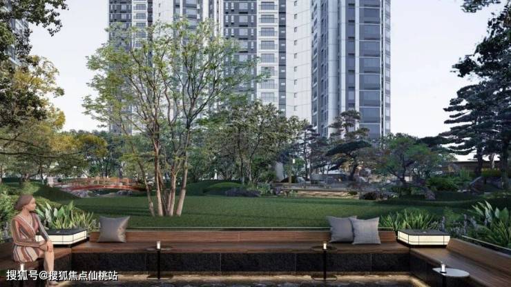 l游园映潭|社交庭院:大草坪与映潭水色相映,结合下沉式卡座,围合出自然的社交空间。