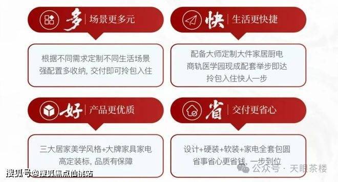书香云锦这次推出中古风、现代简约、意式轻奢三种主流风格设计,带软装一起交付。包含大容量玄关柜,全屋中央空调,超5.1m台面厨房,岛内同款大尺寸地砖等,更有当下流行的网红款定制床、床头柜、沙发、茶几、餐桌、电视柜、衣柜、隐形纱窗都在内。同时精选品牌家居与电器——如摩恩卫浴、卡萨帝厨电、方太洗碗机等(具体品牌以交付清单为准),严选材质与工艺,打造兼具颜值与功能的品质住居。