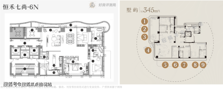 我们以3-4米为一个景观面系数N,此前300多平户型,差不多在6N,那么御宸天悦345,几乎能从9个角度收藏不同的五缘湾。
