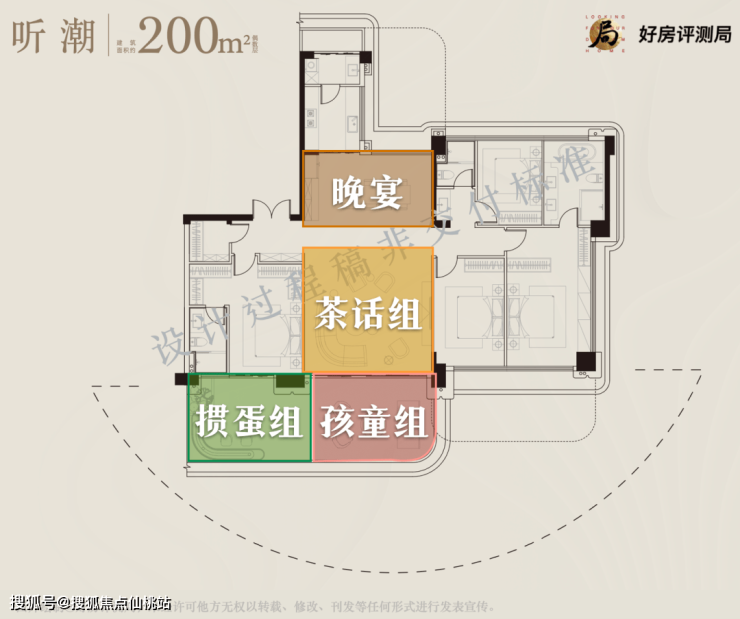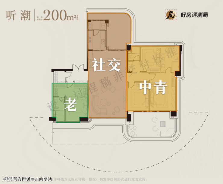 高质量的家庭=全家相聚+合适距离。分层理念是当下大平层的主流,但多数大平层的“分层布局”只是实现的动线上的分隔,都忽略了老人房的体面。