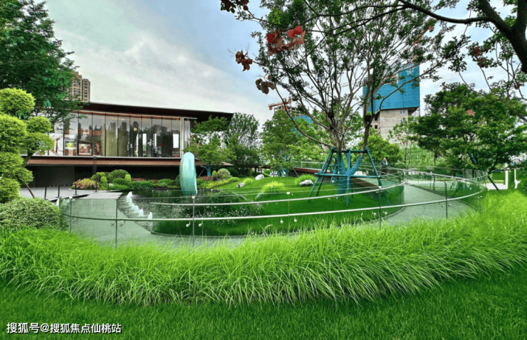 以“江为名、山为序”的创作手法,做成了高低错落、山水相融的花园案场,巧妙地把外部的生态场域,变成了极富有领地感的住区后花园。既构建了互不干扰的空间经营关系,又是对江岸生态体系的友好延伸。