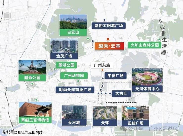 项目半径5公里画个圈,直接圈进体育中心、天河城、正佳广场几个顶流商圈。