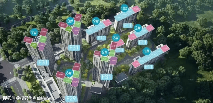 规划总户数约796户,由4栋高层+5栋低密洋房组成,采用围合式布局 ;高层总高约31层为两梯五户(层高3米),洋房总高11层为一梯两户(层高3.1米);楼间距横向最长距约110米,纵向最宽距约60米,最大化中庭视野;车位配比:规划机动车位约500个,车位比1:1.2,全人车分流设计;