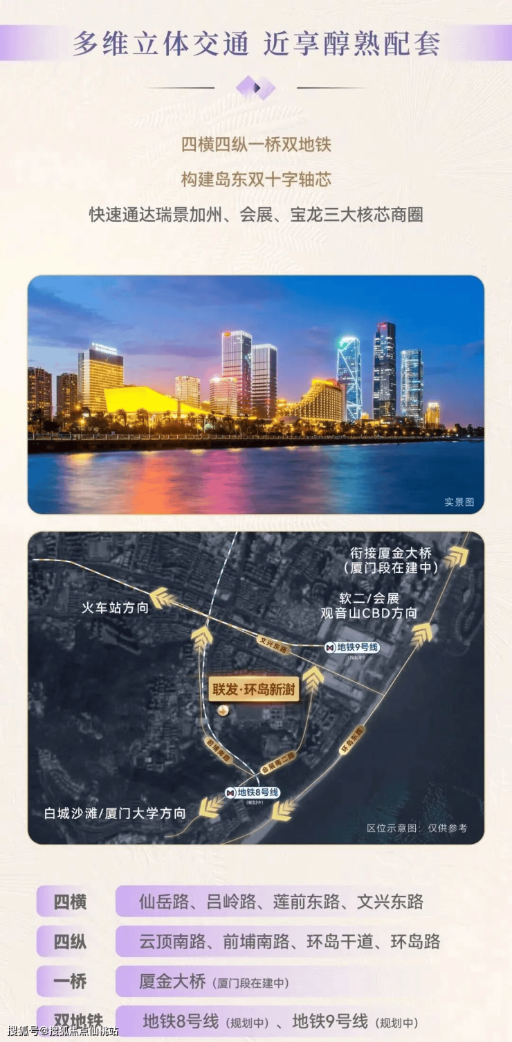 •自驾:10分钟达软二/观音山CBD,15分钟直达厦大,临近环岛路与环岛干道;