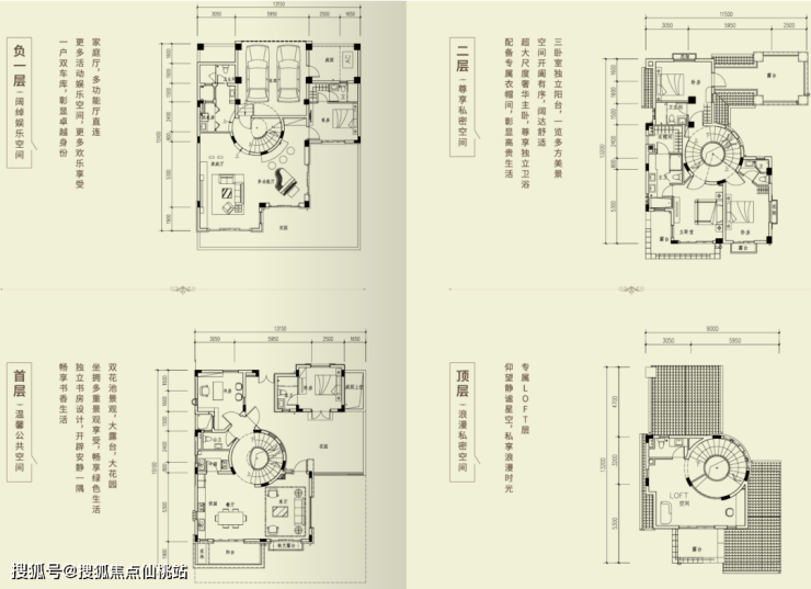 项目主推建面约350-388㎡的六房四厅两车库户型,以Loft设计拓展垂直空间,满足家族全生命周期需求。每户均配备私家温泉入户,2808米岩层裂隙温泉与76℃偏硅酸泉,将“可增值的温泉资产”融入日常。西班牙圣巴巴拉风格建筑,手工凿刻立面如珠宝般璀璨,搭配超大面宽景观阳台,让自然光线与湖山风光无界渗透。户型设计兼顾私密性与社交性,无论是家族聚会还是圈层宴请,皆能从容承载。