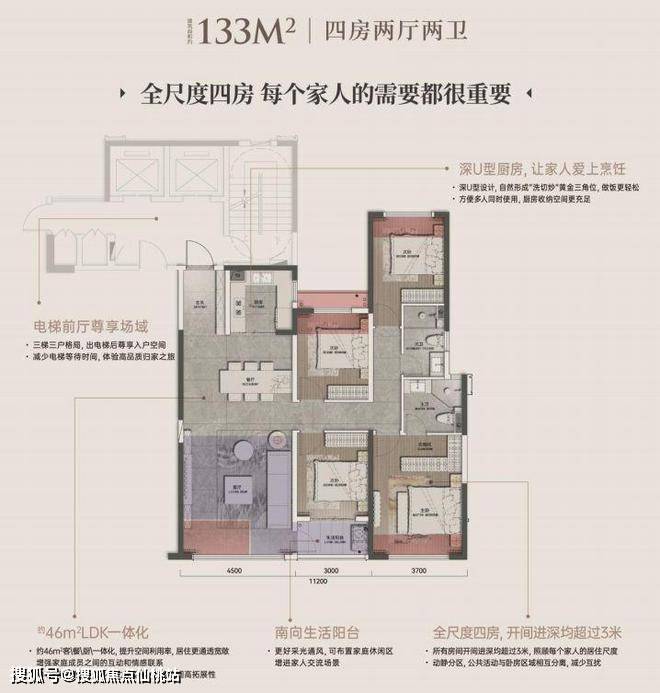 建筑面积约133㎡居家四房