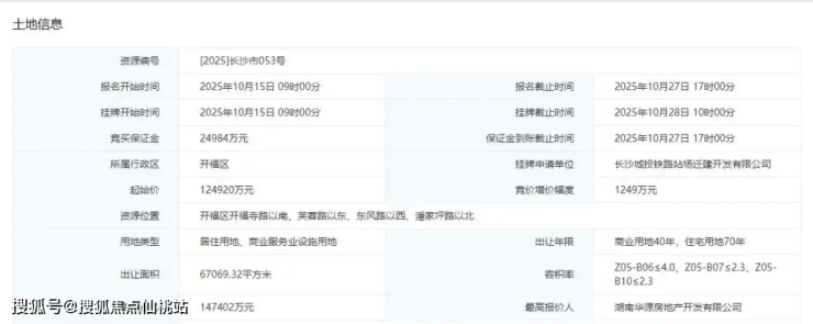 项目即去年10月成交的[2025]长沙市053号地块,经过保利、中海、建发3家房企19轮竞价,最终由保利地产以总价约14.74亿元摘得,折合楼面价8497元/㎡。