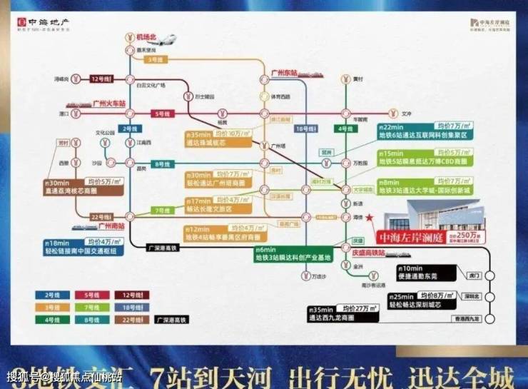 交通优势明显,周边 有3 条地铁交汇,现成的 4 号线、3 号线东延段海傍站和 8 号线南延段(规划中),可畅达广州全城,方便居民日常通勤和出行。