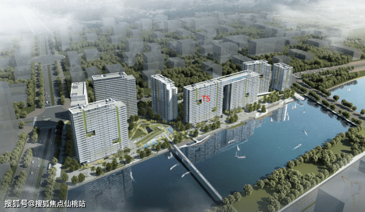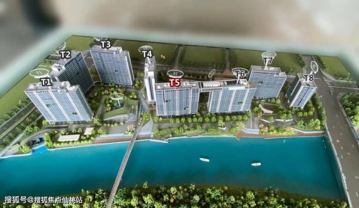 “水岸”有8栋公寓,T1-T4栋已售罄,T5栋是近期新推出的“楼王”产品,位于小区正中,直面会展河,楼顶还有空中泳池!