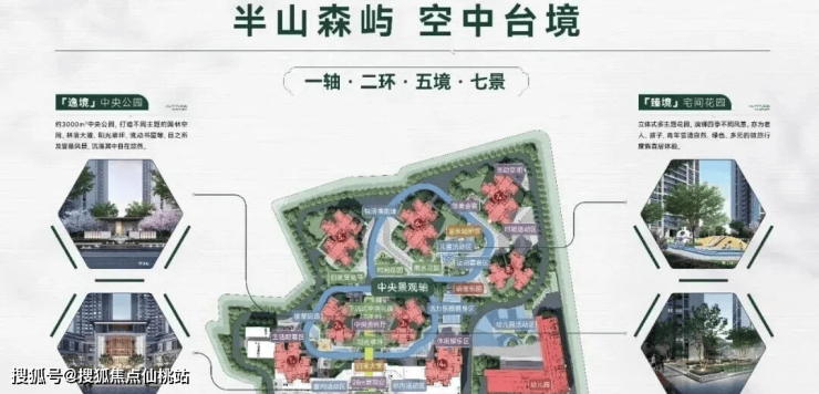 休闲——项目以“归境、悦境、逸境、臻境、秘境”五境归园理念,营造沉浸式森意栖居体验,涵盖约1200㎡的迎礼广场,约400㎡的下沉庭院园林会客厅,约3000㎡的中央公园。