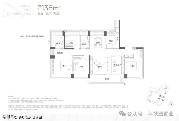 建面约138㎡4房2卫