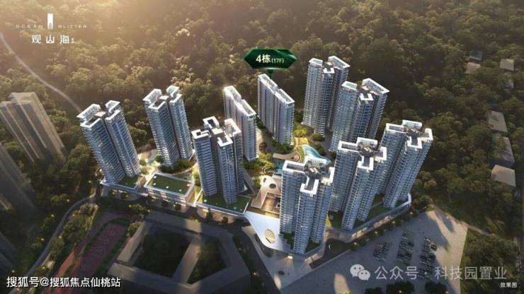 观山海家园 总占地4.2万㎡,总建面16.3万㎡,容积率2.65,绿化率30.85%,共10栋住宅总楼高17-25F,规划总户数870户,停车位987个,车位占比1;1.34。