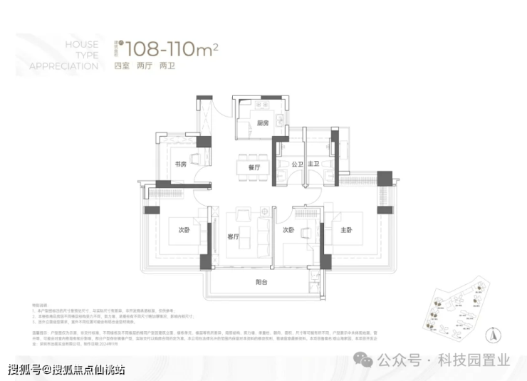 建面约108-110㎡4房2卫