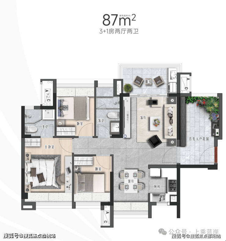 约97㎡ 2+1房,引领人居风尚