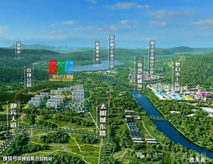 三亚东方太阳城·山河苑项目,西山顶公园,东拥三亚河(槟榔河),近享北源池水库、荔枝岭生态景观,面朝亚主城区、三亚湾等,以山河为靠,以繁华为景,打造天赋上境栖居地。