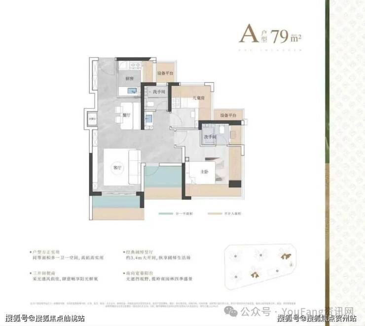 即将首发入市的是一期3栋、5栋的产品,大约368套,建面79㎡3房2厅2卫、约89㎡3房2厅2卫、约99㎡4房2厅2卫、约119㎡4房2厅2卫,共四种户型。