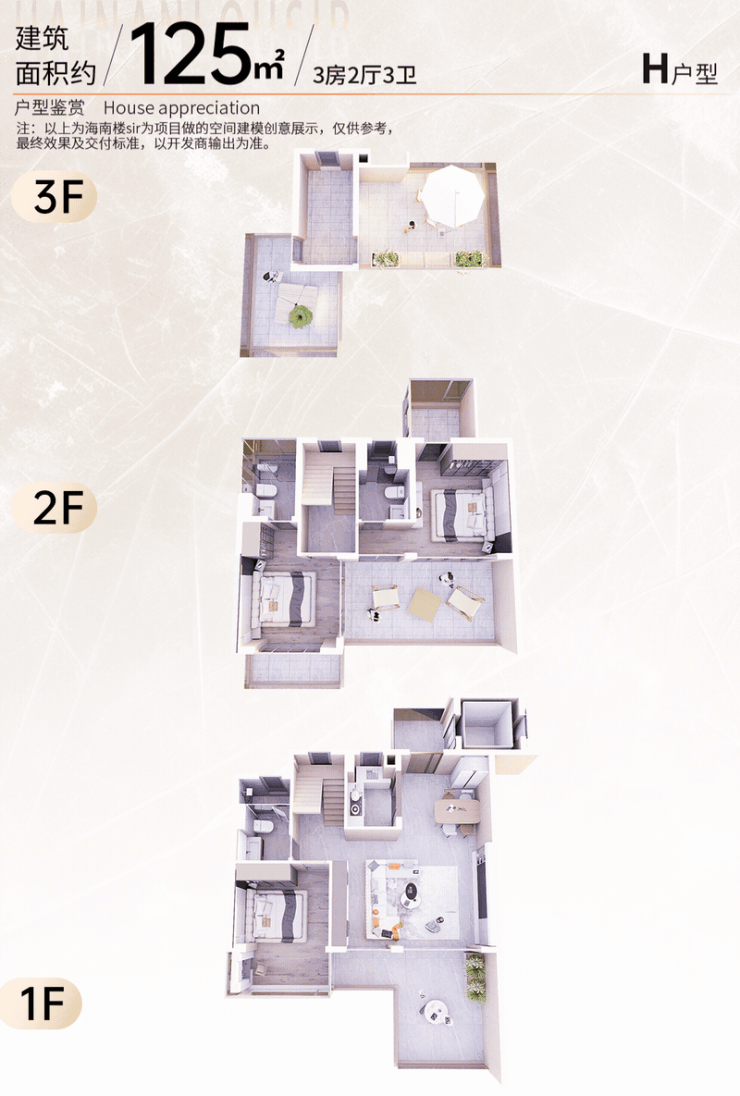 香水湾18°院建面约125㎡~175㎡全新海居墅,但通过空间魔法的巧妙延伸,使用率最高可达160%。