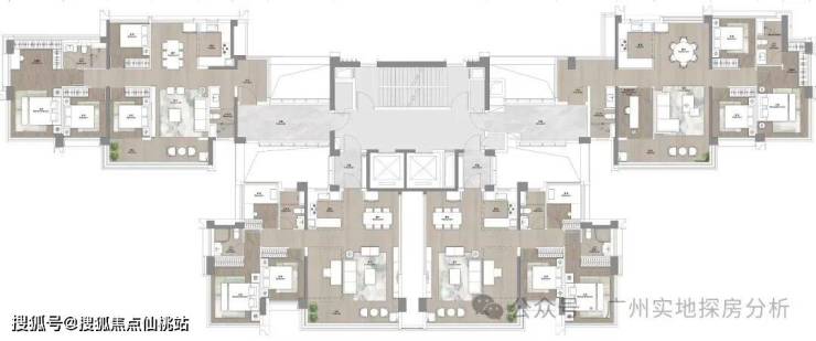 139㎡天际大平层4房3卫,仅15套,配置占据东边梯腿 23层以上270°环幕视野尽揽珠江新城繁华。
