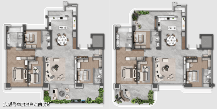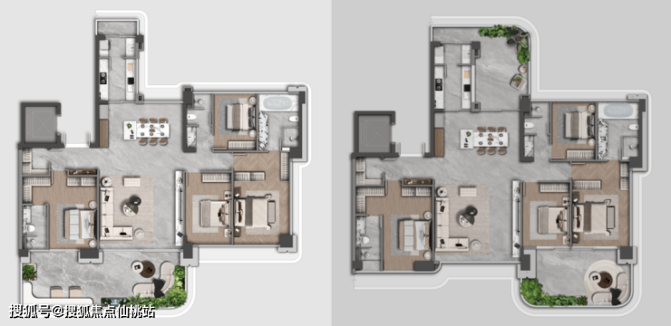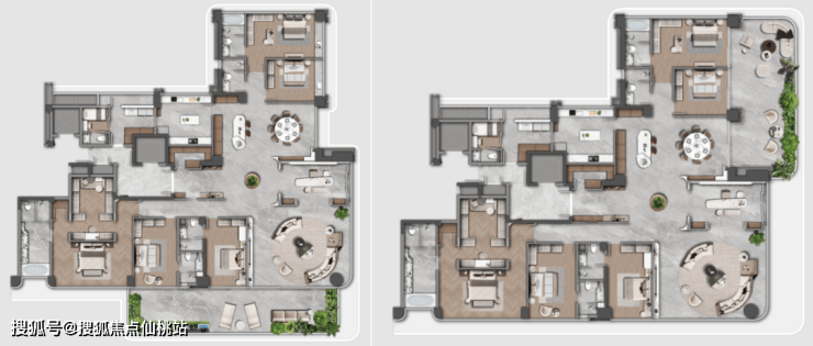 项目涵盖建面约190-430㎡面积段户型,均配备独立电梯厅。300㎡以上的户型额外设置了主人与后勤分离的双动线,并为主卧配置了独立的男女主人衣帽间及全屋独立卫生间。所有户型均注重实用功能,标配储藏间、家政间以及独立的中西厨空间。客厅面宽5.5至9.1米,尺度开阔,并附赠面积超过30㎡的私属空中花园。在建筑结构上采用框架剪力墙体系,确保主要居住空间无承重墙障碍,便于后期业主根据家庭结构调整房间格局,实现全生命周期场景。