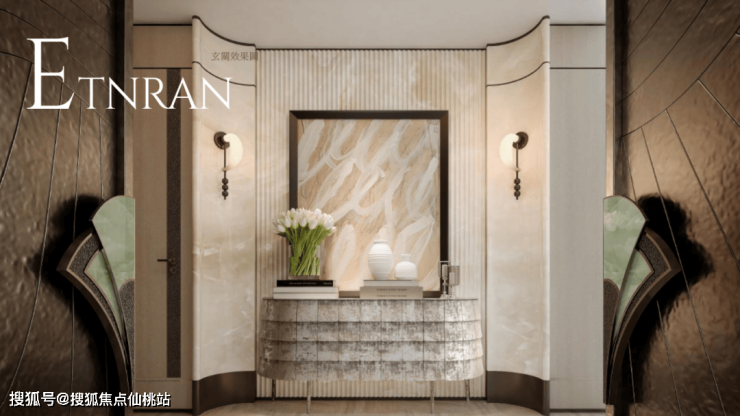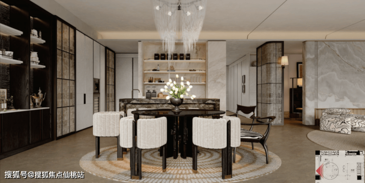 350户型以精致沉稳的东方隐奢风格为主线,定制贝母入户门与高级灰石材地面奠定奢雅基调。空间通过深浅色调对比、PU皮革与浅色奢石的材质碰撞,营造张力与温度;弧面天花则以柔和造型平衡视觉,共同打造出兼具力量感与雅致氛围的居所。