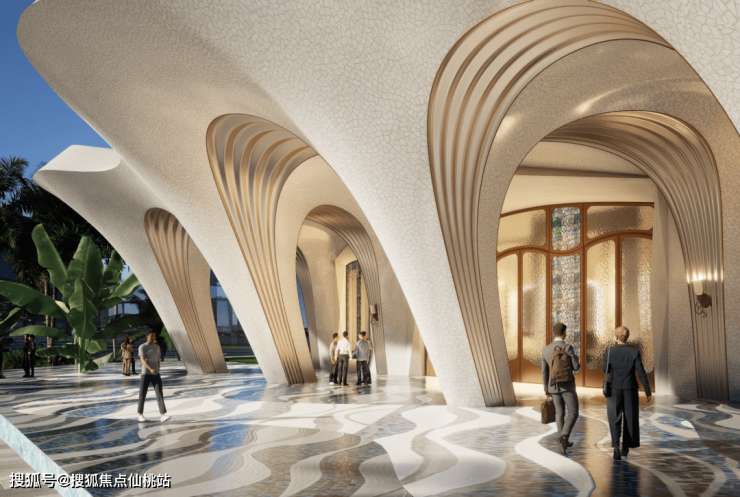 大量运用了流动的曲线元素,打破了现代奢宅的极简冷淡工业风,更赋予建筑一种灵动的美感。