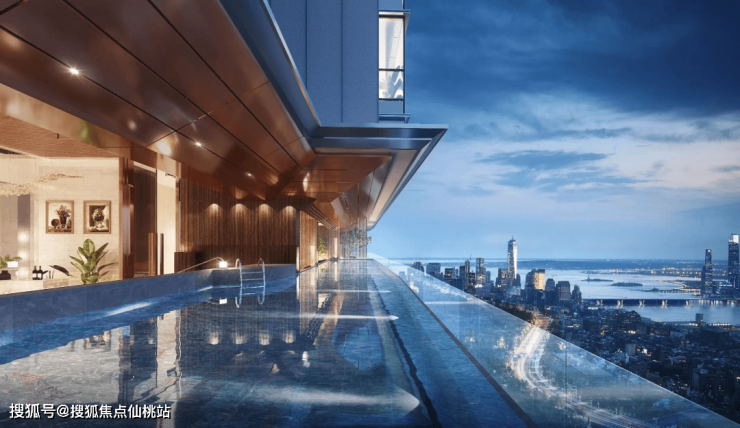 项目提供的2#38层的北向江景效果图,一线珠江美景以及北面的金融城城市景观均一览无遗。项目的3F会所,设有空中泳池,宴会区、健身室和休息区等等。
