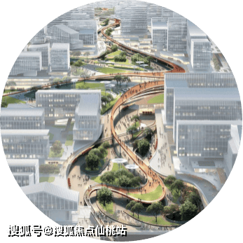 从生命始源、种子萌发、破土而出、向上生长交织的过程中提取生命曲线1P,进行转译并有机地植入立面空间,塑造富有生机的、灵动轻盈、舒展的立面形象,同时结合环保、可持续的建筑材料,零碳赋能,数智协同,打造生态园区的“生命绿芯”。